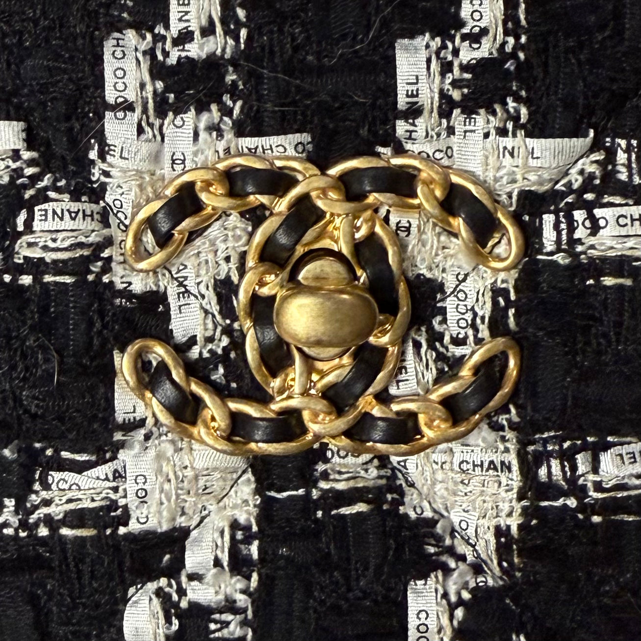 -'Coco Chanel' Ribbon Intertwined in Black and Ecru Tweed